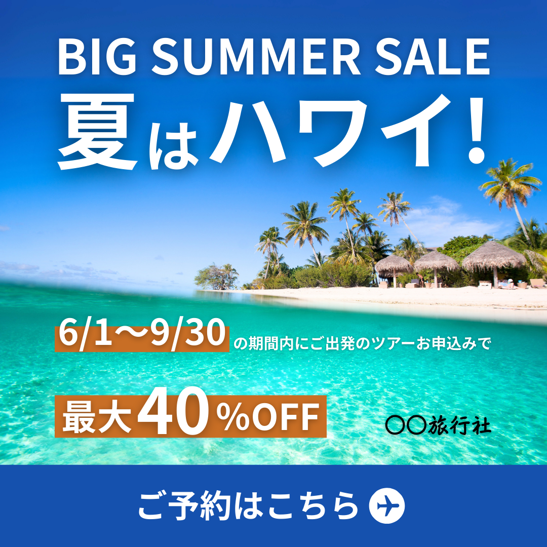 カップル・ファミリー向けのハワイ旅行キャンペーン告知です。